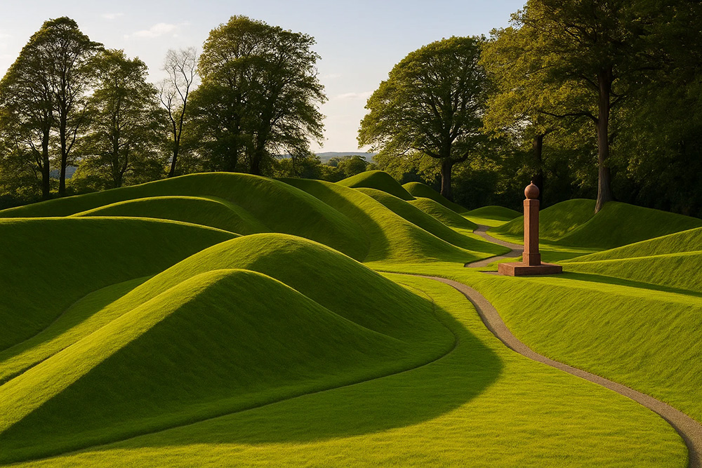 - Холмы и курганы — декоративные возвышения с плавными склонами